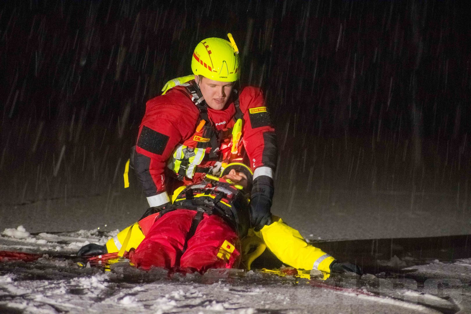 Am 8. Januar trafen sich die genannten Einheiten in Bad Honnef-Aegidienberg am Himberger See, um verschiedene Szenarien, die beim Einbrechen im Eis auftreten können, zu üben. Konkret gab es folgende Übungssituation: Eine eingebrochene erwachsene Person und zwei auf dem Eis befindliche Kinder sollten geborgen werden. Als Schwierigkeit kam hinzu, dass es später Abend war und deshalb bereits dunkel. Außerdem war die Sicht wegen Schneefall schlecht und die Temperaturen lagen bei unter Null Grad.