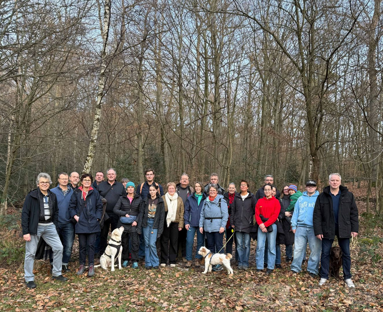 Manchmal wird aus der Weihnachtswanderung, die in unserer Ortsgruppe traditionell am 25. Dezember stattfindet, eine Neujahrswanderung. In diesem Jahr waren alle Mitglieder, die Zeit und Lust hatten, ein wenig zu wandern, sich auszutauschen und anschließend Würstchen zu essen am 17. Januar 2026 eingeladen. Treffpunkt war die Honnefer Jugendherberge, von wo aus es rund anderthalb Stunden durch den Wald ging, was auch die drei mitwandernden Hunde begeisterte. Anschließend gab es, wie immer, eine Stärkung.